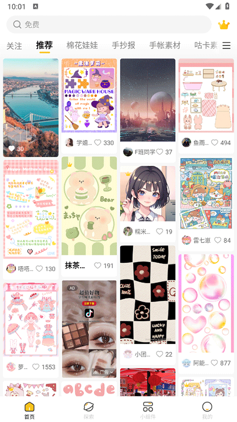 超萌鸭app找那个还可以进行手账的塑造,超多的素材,包含贴纸,手帐素材、咕卡素材、棉花娃娃、换装、花边胶带等各种各样精美的素材和贴纸能够让你轻松的找到一些灵感,从而快速的塑造出一个属于自己的手帐,还能够为其添加背景、相框、贴纸、文字等内容,让你的手账更有灵魂,若你对此拥有一定的需求,一定要试试本软件,让你十分的满足。