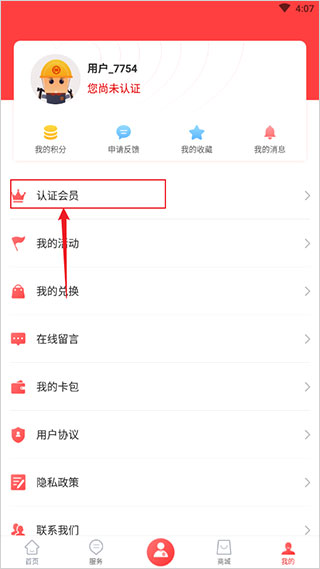 2、进入个人中心页面后,再点击【认证会员】;