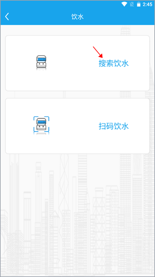 2、有两个连接饮水机的方式,点击上方的“搜索饮水”。