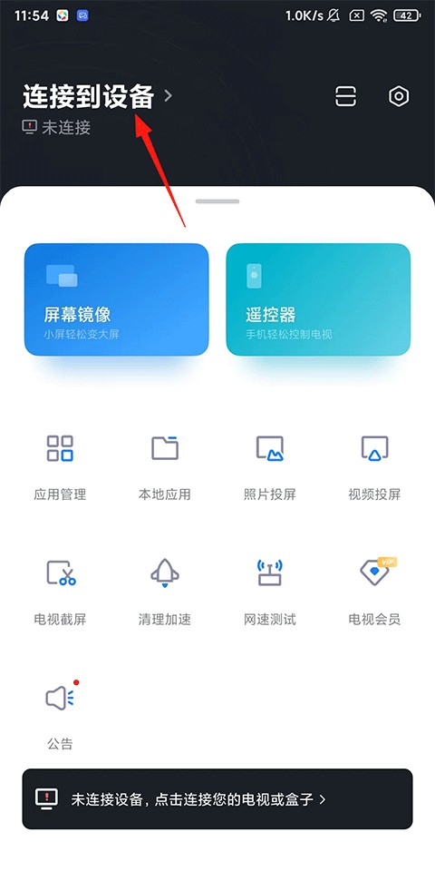 1、打开小米电视助手,在首页点击【连接到设备】;