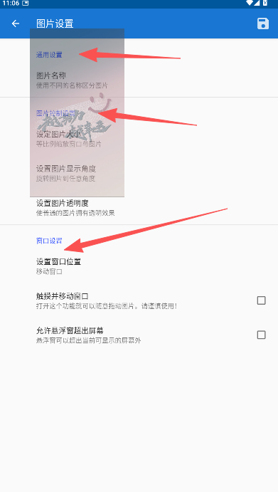 悬浮图片是一款能够深度控制用户设备中的悬浮窗功能,从而让用户在使用设备的过程中拥有更优质的操作,即让平平无奇的图片展现出全新的效果,让用户的桌面更加的迷人,产生一种神奇的效果。在软件的使用过程中,用户可以自定义的进行悬浮图片的内容,可以自行的导入自己喜欢的内容到其中,然后对其的大小、通明度等内容进行修改,使之更适配于自己的桌面,拥有更佳的效果。