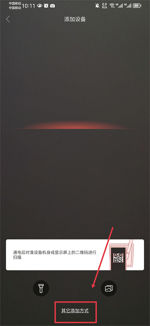 2、将手机对准设备机身或显示屏上的二维码进行扫描即可添加,若扫描不了可以点击下方其他添加方式