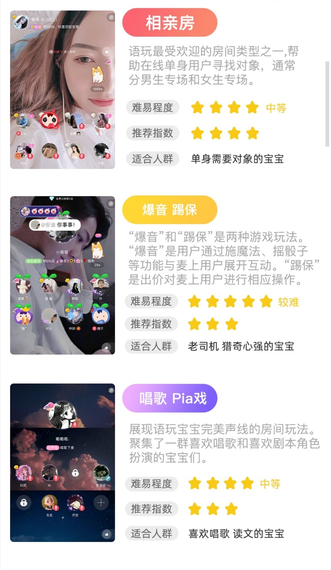 语玩房间玩法多种多样,用户宝宝们发明了N种房间玩法。总有一款适合你!