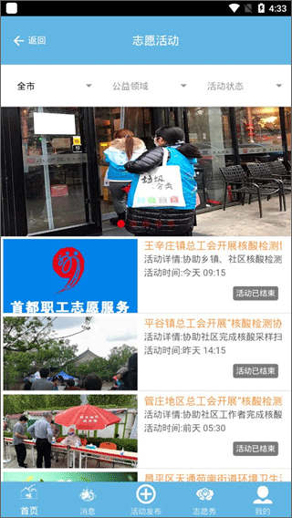 4、找到很多无偿志愿活动,有着无偿献血,物品分发,体检活动等各种各样的。