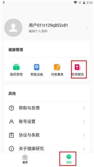 8、在“我的”页面,“检测报告”中可以查看每次的检测结果