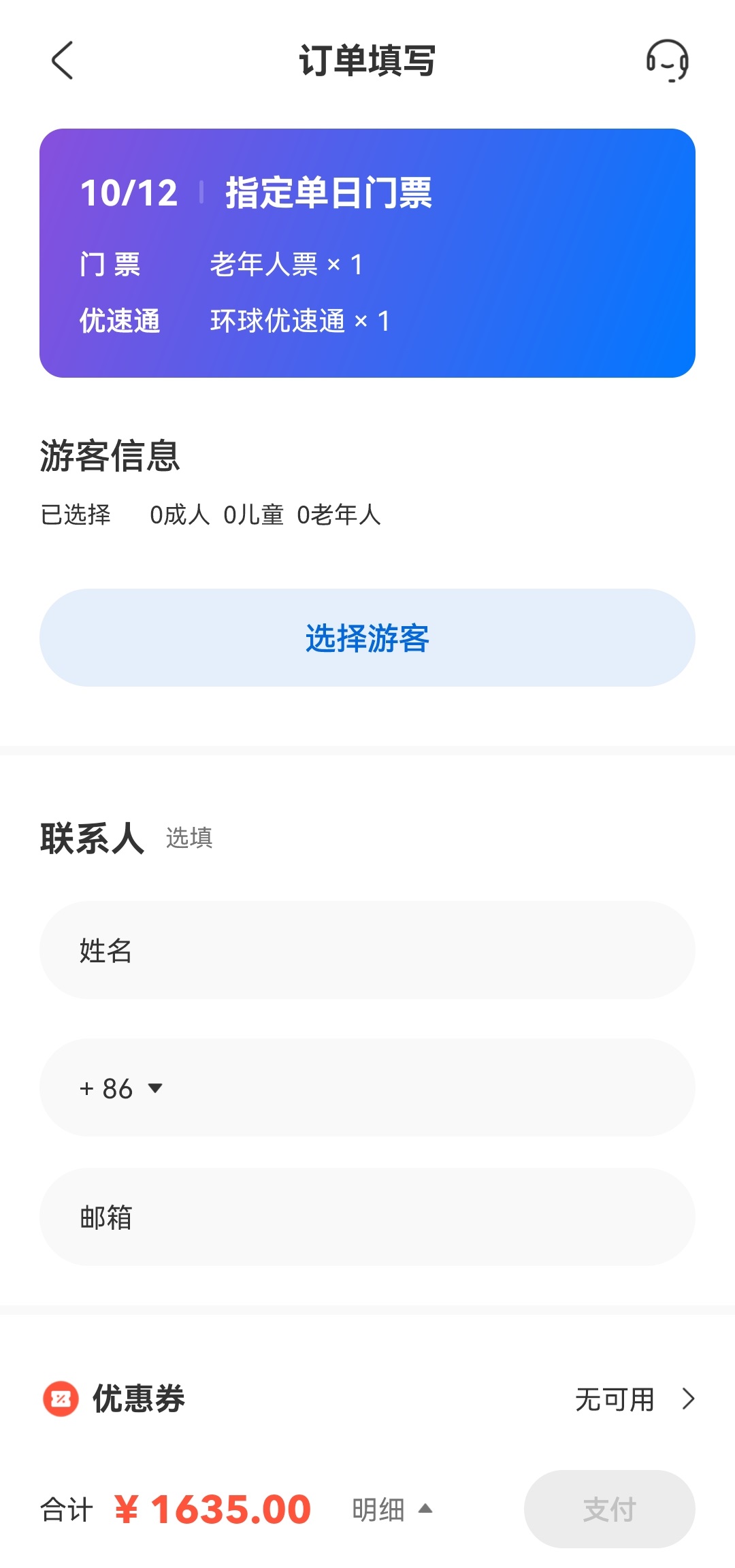 5、输入游客的信息之后点击右下角的支付就购买成功了。