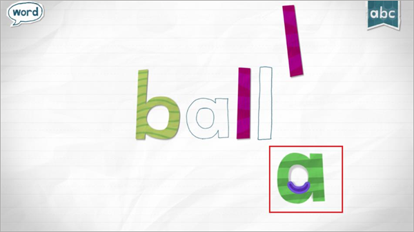2、孩子拖动字母到正确位置时,字母会变成活泼的小动物并发出读音,拼写完成后单词会做鬼脸,强化记忆
