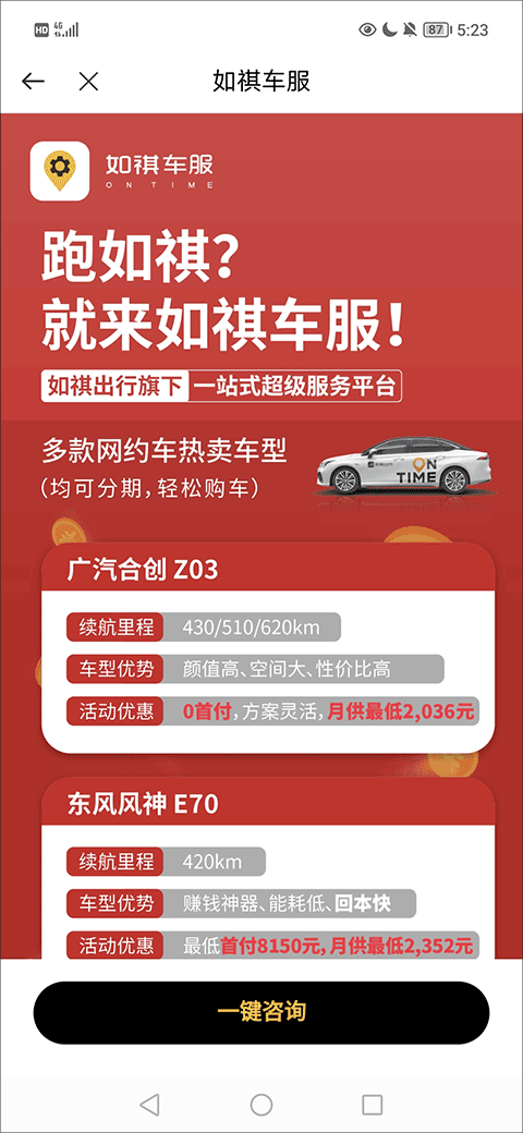 4、在如祺客服界面找到并点击“一键咨询”选项;