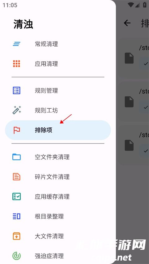 3、有时候我们并不想清理掉需要用到的文件,可以点击服务功能找到排除项。