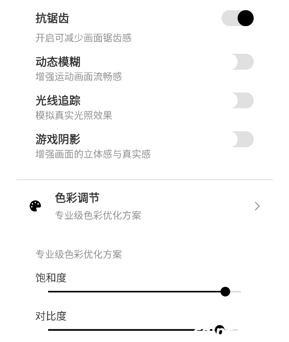 6、下面还有更加细节的画质设置,用户可以根据自己的喜好开启。