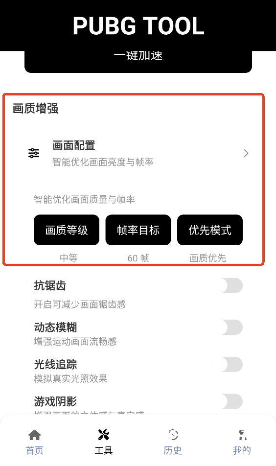 1. 画质和帧率:一键解锁画质选项,限制/120帧;