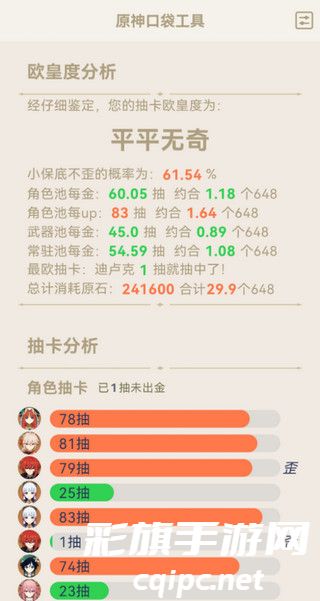 2、之后就可以看到自己的详细抽卡分析信息啦。