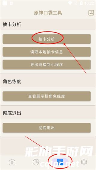 1、在原神口袋工具官方最新版中依次点击菜单界面、抽卡分析;