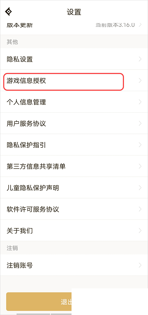 3、在设置界面中下拉找到并点击游戏信息授权选项。