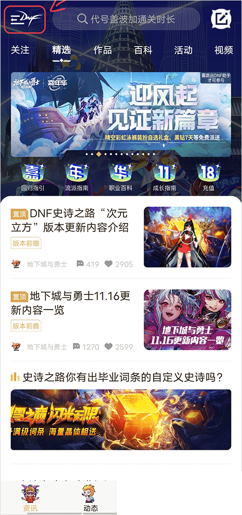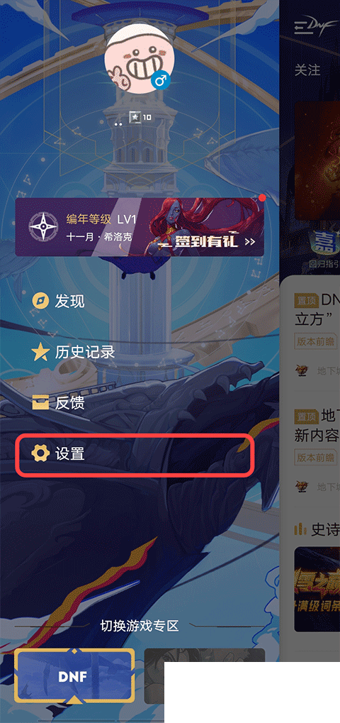 1、打开DNF助手APP后,点击左上角DNF图标打开菜单。