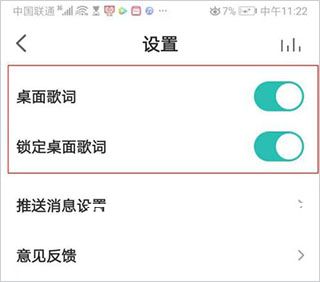4、在设置页面,点开桌面歌词按钮。然后再点开锁定桌面歌词按钮