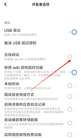 6、返回主界面点击“无线调试”以进一步配置。