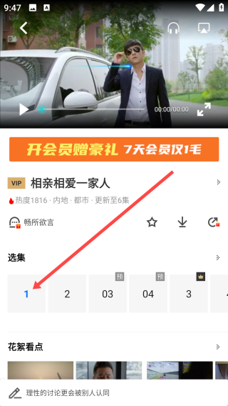 3、进入第一集后,点击【放大图标】即可