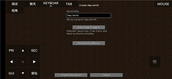 7、进入此界面后选择你的游戏模式以及名称并点击下方的“create new world”;