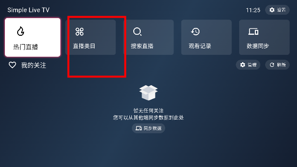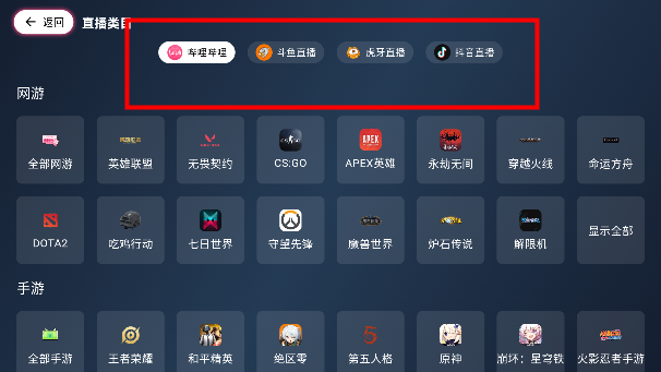 进入主页,点击直播类目,可以切换平台