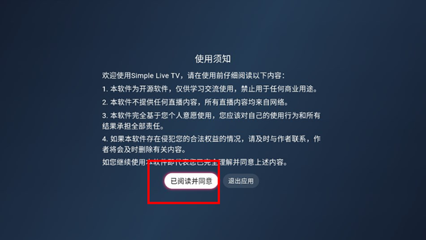 本站下载安装Simple Live TV电视端,点击同意隐私权限