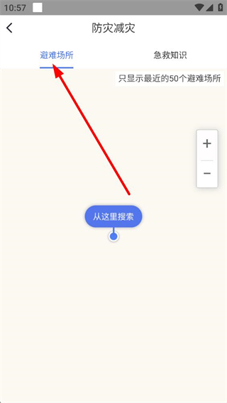 4、防灾减灾板块,可查看避难场所和急救知识,避难场所可搜索最近的50个,学习急救知识,提升防灾减灾能力。
