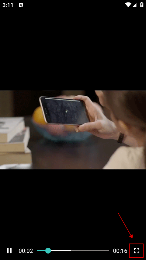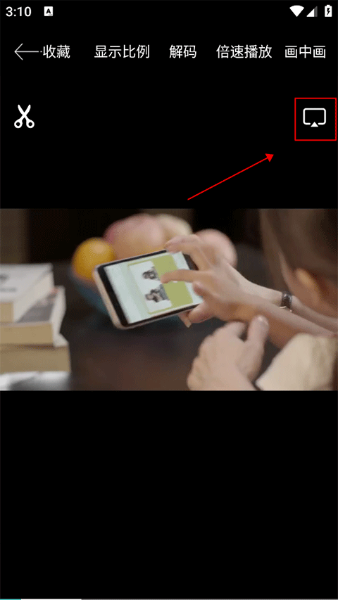 1、在视频播放界面中点击屏幕会显示进度条,然后我们点击进度条最右边的方框