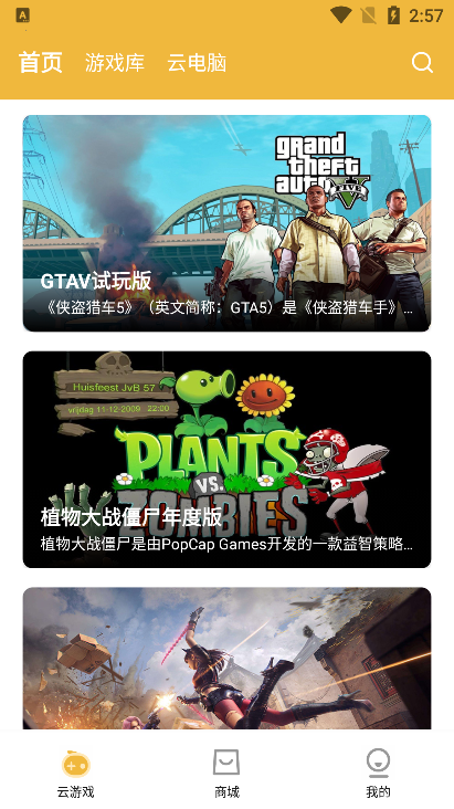 4、在云游戏首页用户可以浏览到众多的云游戏内容
