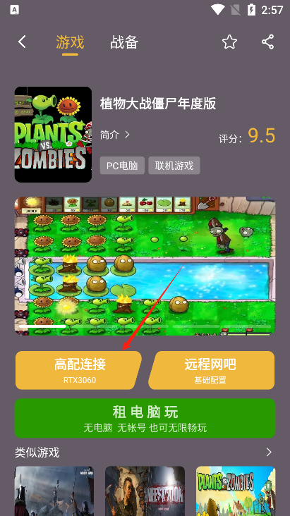 5、选择一款想玩的游戏,点击高配连接就可以开始游戏了