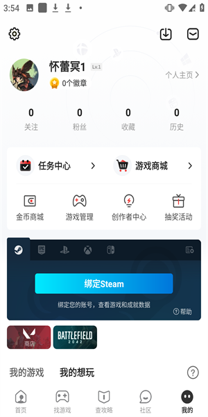 游戏帐号绑定:绑定Steam和PSN游戏帐号,炫耀游戏名片。