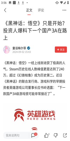 2、直接点击新闻可以查看详细的内容,还可以进行评论和点赞。