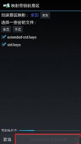 3、选择新建的密钥文件对卡进行读写,读取出卡的数据可以保存到手机中。