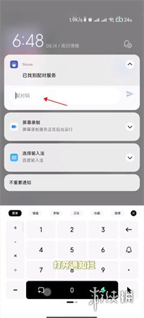 6、在通知栏下拉,找到并输入刚才复制的配对码进行配对。