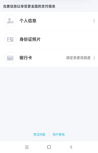 5、点击进入“实名认证”选项,选择最底部的“账户更名”。