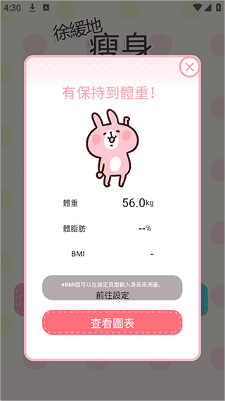 3、系统会自动生成可爱的图表,粉红兔兔与P助会根据你的进度做出萌趣的互动。