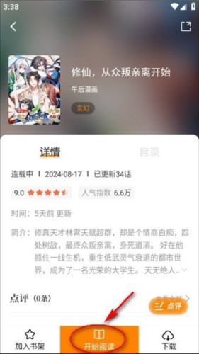 2、进入软件后,选择要观看的漫画,点击下面的“开始阅读”,就可以进行观看了。