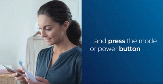 3、从充电器上取下牙刷,或按模式按钮激活手柄上的 LED 符号。
