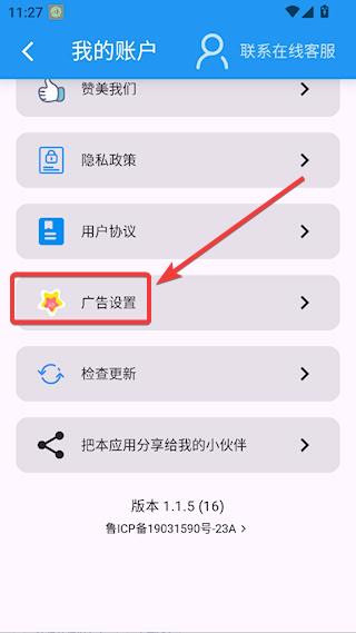 3、下拉找到并点击【广告设置】。