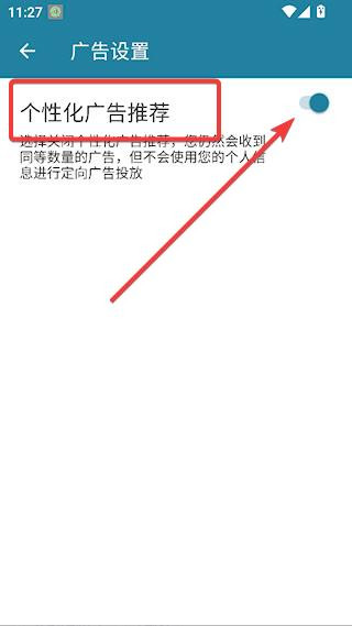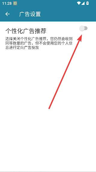 4、点击【个性化广告推荐】后面的开关。