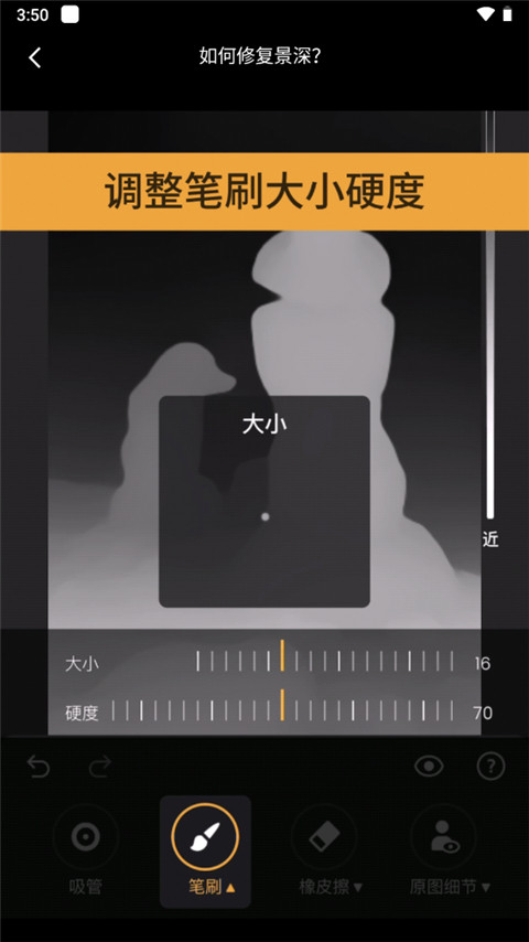 3、点击笔刷,涂抹你已吸取的深景信息;