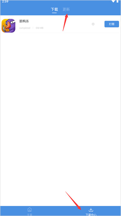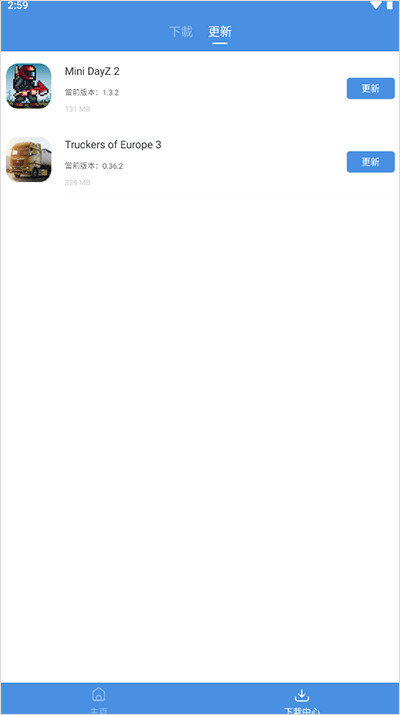 1、打开GamesToday手机版点击右下方的下载中心,上方会有更新按钮点击。