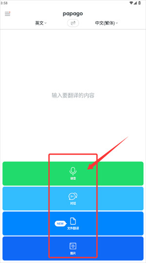 1、打开Papago中韩翻译器软件后,点击左上方按钮;