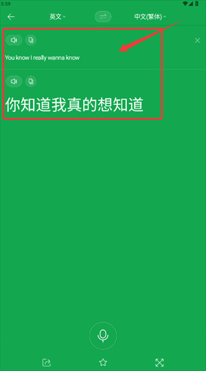 把想要翻译的内容通过麦克风说出来,软件便会识别语音并提供实时翻译结果与语音自动读取功能。