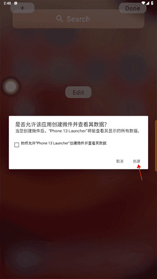 5、页面上弹出一个提示,问是否让这个软件创建微件并查看其数据,点击“创建”。