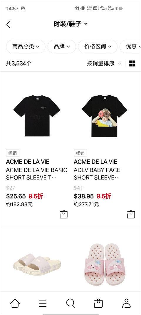 4、然后点击左下角“三”按钮,用户可选择要购买商品的分类,如时装/鞋子。