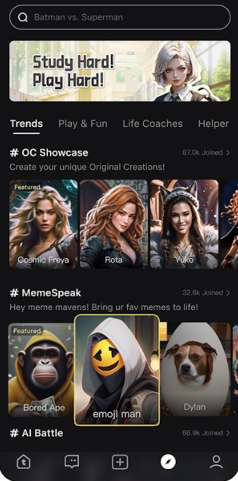 1. 快速生成:Talkie能够快速地生成AI虚拟角色,并支持与AI伴侣进行互动。