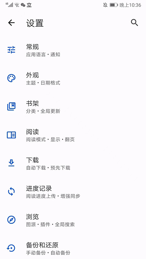 11、在更多界面,可进行外观、书架、阅读、下载、浏览、备份等方面的设置,以上就是Tachiyomi官方版的使用方法了。