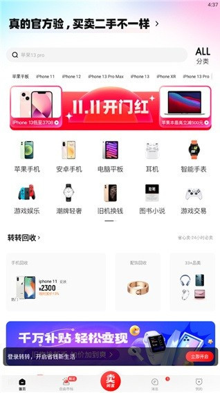 转转二手交易平台支持以旧换新、支持工程师上门质检验机、支持信用回收,并且可通过线上一键下单,实现手机、平板、电脑、旧衣、奢侈品、游戏卡券、图书等多品类回收,轻轻松松将闲置变钱。