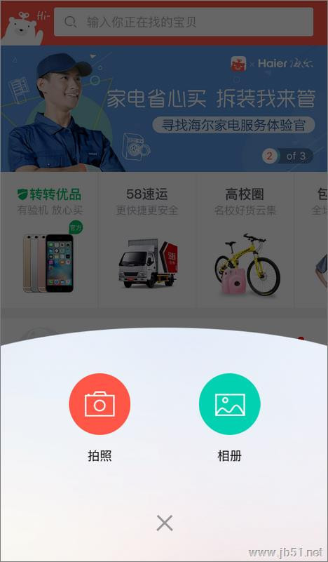 3、可以直接拍照或者从自己的相册中选出你要卖掉的二手物品照片。