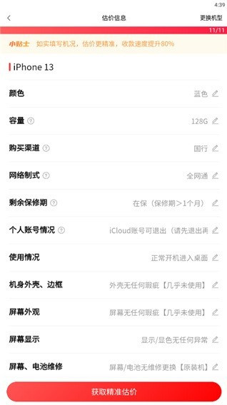4、填写你的手机信息,如实填写机况,估价更精准,收款速度提升80%;